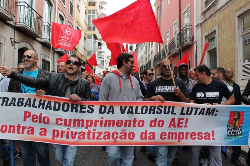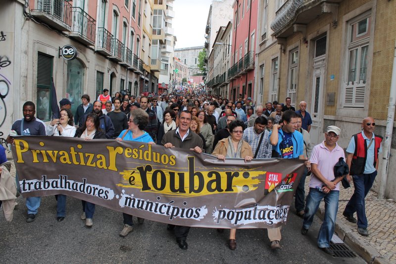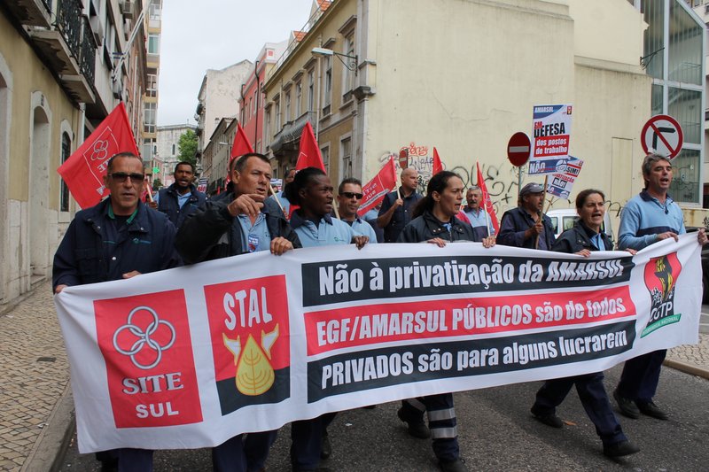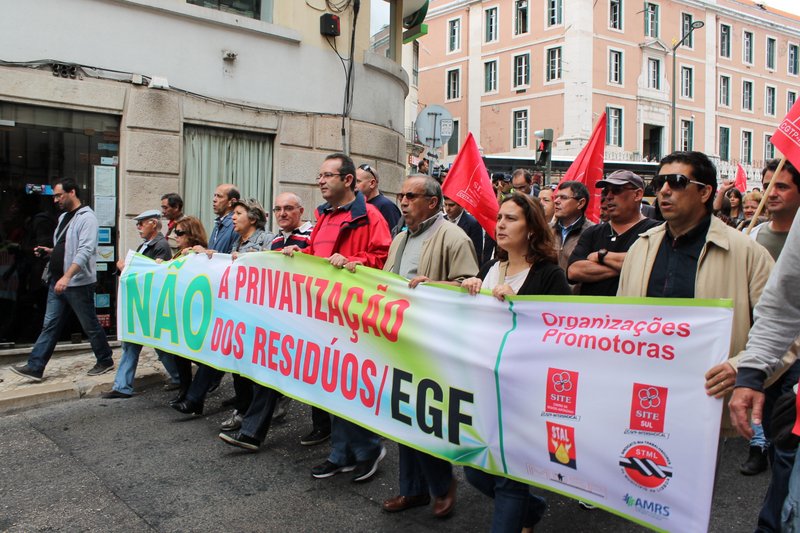 Milhares de pessoas, com especial relevo para trabalhadores de empresas de tratamento e valorização de resíduos sólidos que fazem parte do Grupo EGF, manifestaram-se hoje em Lisboa contra a decisão de Governo de entregar este sector estratégico aos interesses privados.